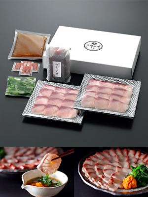 内容量(入り数) | 1箱: 4人前(ブリ200g×2、鍋だし330ml、味付ぽん酢300ml、葱煮80g、もみじおろし5g×4) |