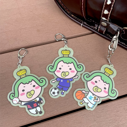 部活動の必勝祈願、卒業・卒団記念品にぴったりな、スポーツキーホルダー。 アクリルキーホルダーは裏が白い商品が多いですが、こちらは両面印刷でおうじちゃまの後ろ姿も楽しめる! 蓄光仕様で、日光や人工の光を受けるとエネルギーを蓄えて、暗い夜道でもほんのり光って交通安全に。 高さ約10cmの大きめサイズで、バッグやリュックにつけても映える! ※10cm・・・1円玉なら5個並べたくらい、ハガキの横のサイズくらい♪ ナスカン仕様で付け替えも簡単です。 野球、サッカー、バスケットボールの全3種類をご用意。 カート付近のボタンよりご選択ください。 部活動を頑張るお子様にもぜひ☆ |