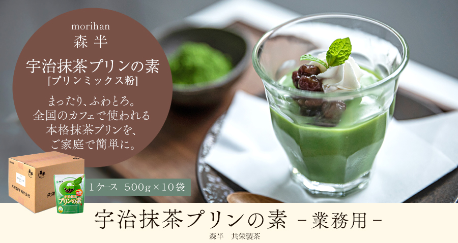 お湯を注ぐだけで、喫茶店のような上質な抹茶プリンが作れる「宇治抹茶プリンの素」です。 実際に全国の 喫茶店・和カフェ・レストランでも採用されている"プロ仕様"。 その本格的なおいしさをご家庭でも手軽にお楽しみいただけます。 創業天保年間、森半の茶師が厳選した濃厚な宇治抹茶をたっぷり使用。 ひと口食べれば、ふわっと広がる抹茶の香り、すっと消える上品な甘さ、ほのかな苦みの余韻。 抹茶本来の風味を大切に仕上げた、大人のための贅沢プリンです。 そのままはもちろん、小豆や栗、生クリームを添えると、より華やかなデザートに。 ご家庭のおやつから、カフェメニュー、業務用まで、幅広くお使いいただける逸品です。 こちらは10袋入り(5kg)のケース販売になります。 |