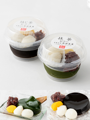 | 内容量(入り数) | 1箱(簡易箱入) 抹茶ゼリー 1個・ほうじ茶ゼリー 1個 |