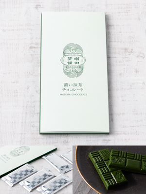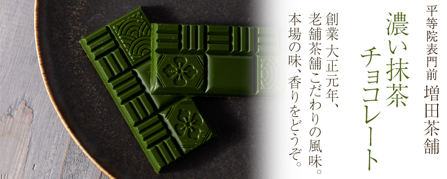 宇治茶の本場・京都宇治。宇治観光でも人気の「平等院表参道」にお店を構える、老舗の宇治茶専門店「増田茶舗」の「濃い抹茶チョコレート」です。