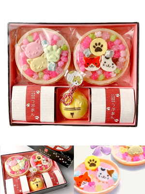 猫好きさんへのギフトとしても人気の「ねこもにゃか」です。 最中の中には可愛い猫をモチーフにしたゼリー菓子や和三盆糖の干菓子、金平糖などのお菓子が入っています。 それらをお召し上がりいただいた後、備え付けのつぶあんを最中に挟んでお楽しみください。 ●最中の食感を維持する為、最中の外側に乾燥剤を入れております。お召し上がりの際に、取り除いて下さい。 ●稀にお菓子に色のついた粒が付着していることがありますが、食紅によるもので品質には問題ございません。 |